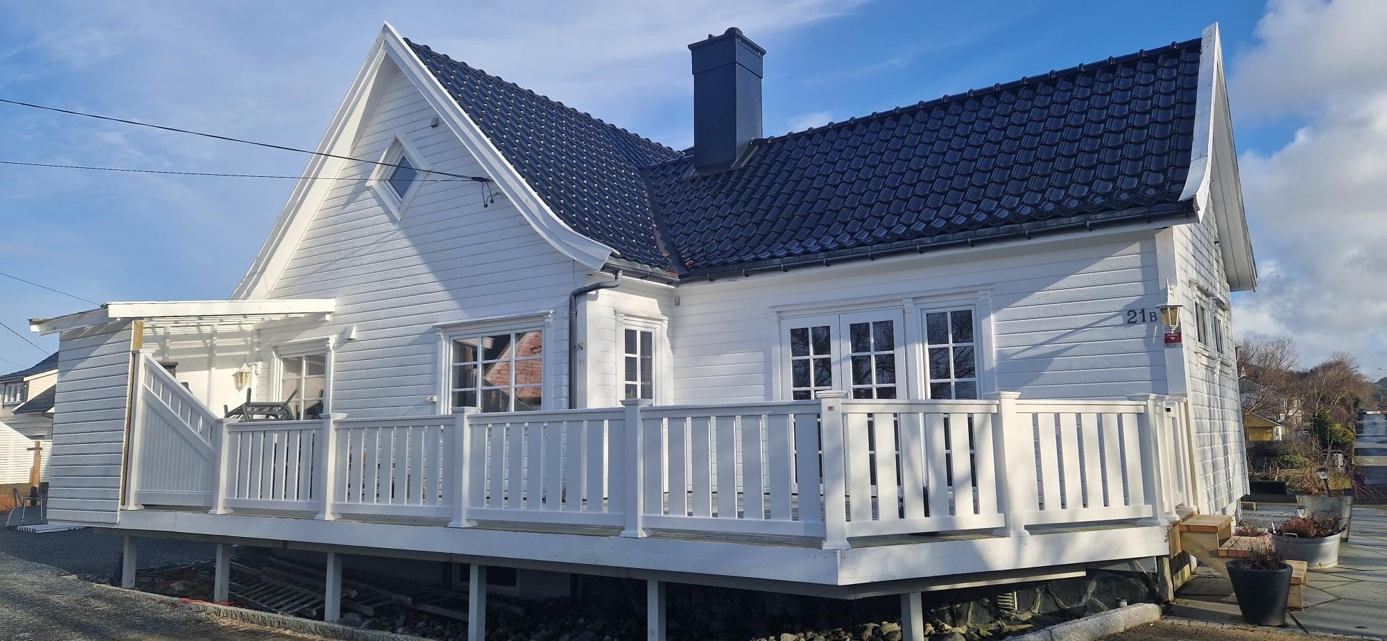 Camilla (33) nøt solen den fine høstdagen, lent opp mot sitt nye rekkverk tenker hun tilbake på da hun og kjæresten selv monterte leveggen og rekkverket rundt terrassen hennes. Akkurat i tide før h...