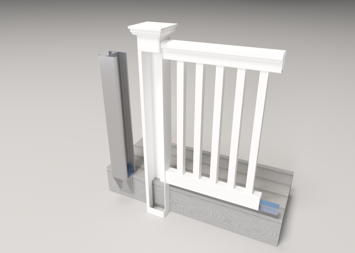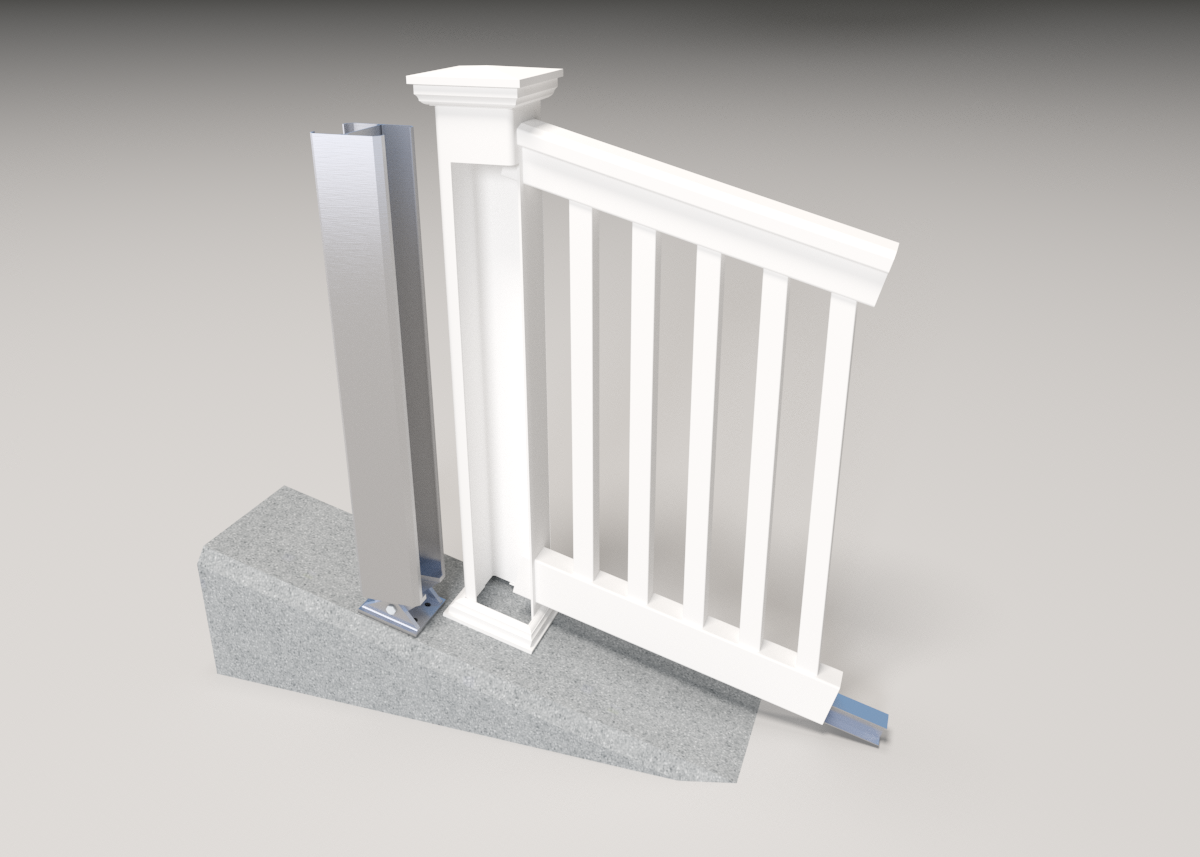 Stolpeinnsatser for utenpåliggende montering benyttes om du ikke vil punktere dekket/membran, har en trapp med trinnene montert på innsiden av trappevanger, eller bare har lyst på et annerledes utseende.