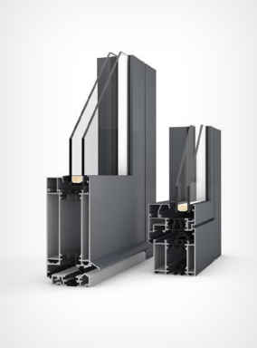 Et "varmt" profilsystem i aluminium, basert på MB 70 men med ekstra isolerende kjerne i profilen.